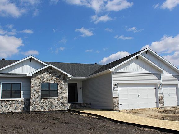Just completed! This new rambler plan has tons of windows and light with a farmhouse design feel. Fully finished basement. 5 bedrooms, 3 baths and 2 fireplaces. Kitchen and livng room open with vaulted ceilings. White kitchen with quartz countertops. Oversized garage with extra deep 3rd stall. Yard is finished with sprinkler, sod and stamped patio. Owner/Agent