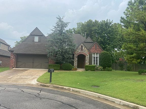 full brick, backed up to green belt, large trees, cul de sac, large rooms, lots of storage, gated neighborhood, 3 car tandem garage, 2 bedrooms down, recently replaced kitchen appliances