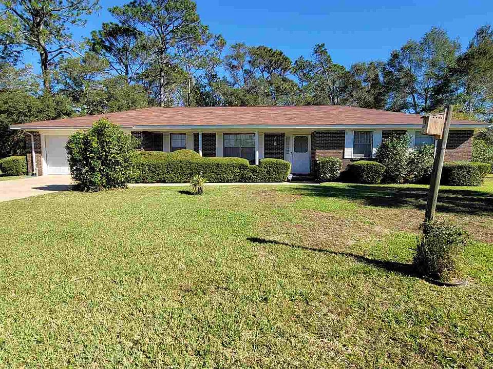 ~Charming Ranch-Style 1970s Home~ nestled between Lake Francis and Hollyhill Estates in Northwest Pensacola. This comfortable abode sits on a spacious full acre with a wonderful, well-kept lawn and surrounded by manicured hedges, palms, 5 dozen camellia trees, and tall pines. The house has been well-kept, with three cozy carpeted bedrooms, a formal dining room, and a quaint kitchen w/ breakfast nook and living room. The kitchen, pantry room, and other areas of the house recently had porcelain tile flooring installed, as well as the addition of a new roof, brand new water heater, and HVAC. The front and back yards are spacious, and definitely big enough to install an in-ground pool. One stand-out feature of the property is the 40' by 30' climate-controlled Dura-Steel workshop in the wooded area behind the back yard (see documents). Built in 1999 by one of the original property owners, the 1,200 sq. ft. workshop has a steel I-beam structure with a 14' ceiling. It has its own heating and air system, power meter, phone and Internet connections, which is perfect for any semi-industrialist, vehicle collector, or RV owner. A double gate swings open to the left of the home for vehicles to drive through to the building's extra tall garage door. The home and property also have a new Chamberlain garage door, alarm system, and a sprinkler system fed by the 140' pumping well. The property is 2 miles from Interstate 10, 4 miles from Navy Federal, 6 miles from Perdido Bay, and 10 miles from Pensacola NAS!