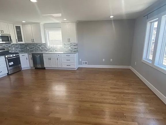 Experience luxurious living in this newer 2 family home. Picture yourself in this bright and sunny open floor plan spacious 2 level apartment. Gorgeous hardwood floors throughout! Garage entry into the huge basement with windows. Perfect for entertaining or extended family. You will also find the new washer and dryer. Walk up the stairs to your open floor plan living space. High ceilings, gorgeous kitchen with top of the appliances and granite counters and full bathroom. Down the hall to the three beautiful bedrooms included the Master Bedroom with its own en suite! Extra special features include Central Vacuum System and Security cameras on site with intercom system at your front door. Near transportation. Parking in garage for one car and another in the driveway! Tenant pays utilities. Apartment is vacant. Call for a private showing. tenant pays utilities