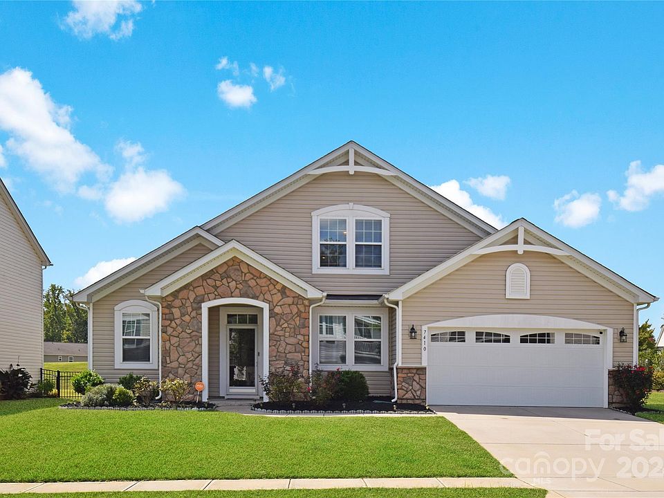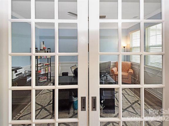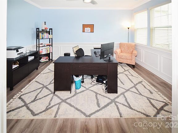 Experience the best of Charlotte living at 7410 Meridale Forest Drive. This 4-bedroom, 3-bathroom home is designed to impress, from its open floor plan to its beautiful, landscaped yard. Cook and entertain in the beautiful kitchen with stainless steel appliances, granite countertops, a spacious chef's island and large pantry. All the rooms offer crown molding throughout. The primary bedroom has tray ceilings and a wonderful soaking tub all on the first floor for your convenience. The lovely home boasts a home office or can be utilized as a formal dining area. The additional bedroom and full bath on the 2nd level includes a flex space. A enclosed patio invites you to enjoy your private outdoor sanctuary, rain or shine and the community pool is perfect for hot summer days. This home is full of upgrades and has an ideal location between Hwy 77 and Hwy 485 minutes from everything Charlotte has to offer. This home is a blend of comfort and convenience; schedule your tour today.