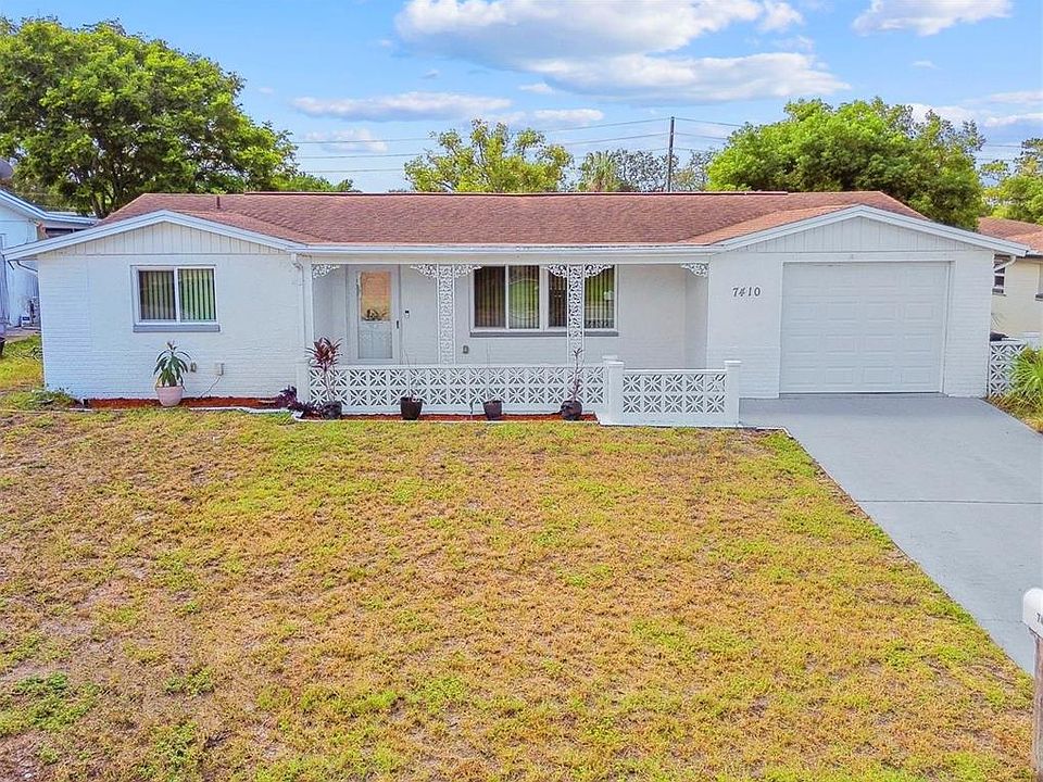 Seller may consider buyer concessions if made in an offer. Welcome to this delightful 2-bedroom, 2-bathroom home, perfectly situated in a quiet neighborhood convenient to US19 and the Suncoast parkway. This home has been lovingly maintained and is truly move-in ready, offering a host of updates and features designed for comfort and convenience. No flood insurance required here. Step inside to discover an open layout that seamlessly connects the family room and formal dining area, both overlooking the beautifully landscaped backyard. The entire home is carpet-free, featuring stunning laminate flooring throughout the living areas and bedrooms, with durable tile in the kitchen and baths. The kitchen is a chef's dream, boasting updated cabinetry, stainless steel appliances, and a decorative backsplash that adds a touch of elegance to the space. Whether you're preparing a meal or entertaining guests, this kitchen will not disappoint. The primary bedroom is spacious and includes a walk-in closet and full en-suite bathroom. And the 2nd bath has been recently remodeled with a fully tiled shower, vanity, and all fixtures. Relax and unwind on the inviting front porch, or enjoy the privacy of the rear screened lanai overlooking a fully fenced yard—perfect for pets or outdoor gatherings. The 1-car garage provides additional storage and parking convenience. This energy-efficient home comes with all new insulation (2018) and insulated hurricane impact windows (2020), ensuring year-round comfort and savings. You'll also appreciate the fresh interior and exterior paint, new baseboards throughout, and the peace of mind that comes with knowing all major systems have been updated in the last 9 years, including the roof (2017), A/C system (2017), A/C ductwork (2020), and water heater (2015). Clean 4-point inspection report is available and ALL appliances are included in the sale, truly a move in ready home. Don’t miss the opportunity to own this beautiful, well-maintained home. Schedule your private showing today!