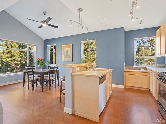 Modern Top Floor End Unit in desirable Tamarind. Home boasts beautiful cork floors, Vaulted ceilings making it light & bright, designer paint, & a cozy Gas FP. Chef like open kitchen features stainless appliances & gas range. Master suite w/grand ceilings, dble Sinks & custom designed walk-in closet! Rare oversized Deck perfect for BBQs & Entertaining. Private individual garage+ driveway parking. Quiet community within walking distance to shopping & restaurants! Issaquah School. NO RENTAL CAP!
