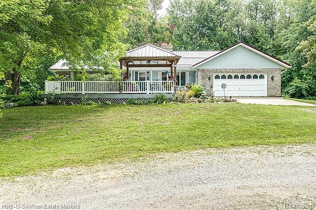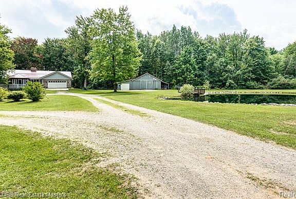 Here it is!!! 9.9 acres,pole barn,pond and 3 bedroom 2.5 bath with a full walk out basement! Beautiful parcel in 2 separately deeded 5 acre parcels. 75% wooded. Plus a 48x32 pole barn with 16x48 heated addition. air compressor and motorcycle lift included. All buildings and home have a new metal roof not even a year old yet! enormous rear deck to enjoy this peaceful wooded retreat as well as a front porch and gazebo overlooking the circle drive and pond! All appliances included in the large kitchen with woodstove too! open dining area, foyer and cozy living room with bay window. office area, mud room, laundry and lav at the garage entry with gated staircase to the finished walkout lower level. Master en-suite for mom and dad along with 2 additional bedrooms for the kids or guest with a large main bath with walk in shower! Your own private oasis that is only 10 minutes from Fort Gratiot shopping or Beaches!