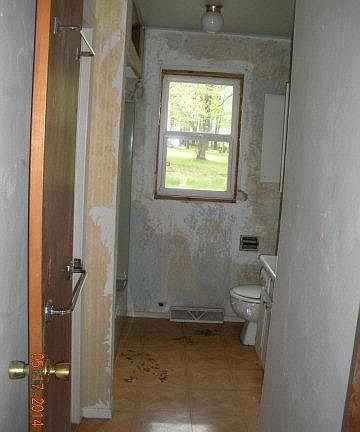 Vinyl siding w replacement windows. Metal roofing. House will need work. Cash purchase ONLY - seller will not accept financing contingencies. Basement has standing water. No utilities on. Some mold growth noted. No trim inside. Siding on left side is missing due to a fire that started outside.