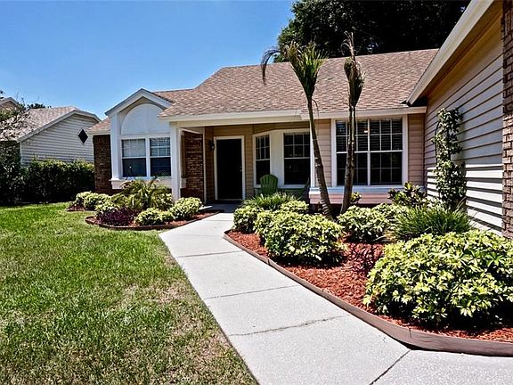 Beautiful three bedroom 2 bathroom home with pond and conservation views located in Nature's Hideaway. Come see what the Florida lifestyle is all about with a million dollar view! Wake up every morning to a park like setting where you can enjoy tranquility at its finest. House backs up to a large pond with conservation lot with no rear neighbors....No flood insurance required. The kitchen is renovated with real oak cabinetry, granite countertops and stainless steel appliances. Freshly painted inside with warm, neutral colors and real wood baseboards. Porcelain tile floors and vaulted ceilings throughout. New vinyl fence with pond access encompasses the property for added privacy. New water softener. A/C and roof are newer. The master suite has double sinks, walk in closet and french doors that open to huge screened patio. Formal dining room with beautiful bay windows overlooking the pond. Enjoy all the nature in your backyard, dinners out on the porch and feeling the warm air while you swing on the hammock at sunset! There is a double gate in the backyard to store a boat with a shed near by. Great location with shopping and grade A schools nearby, very easy commute!