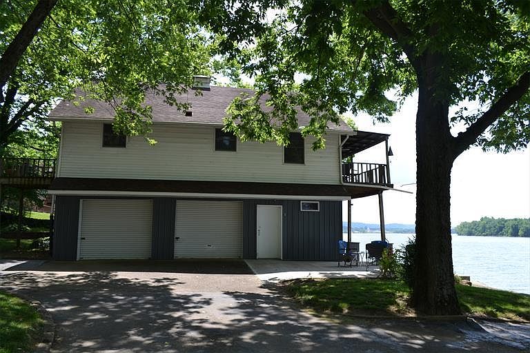 This riverfront home sits atop a 2 car garage so it will never be flooded. The home is 3 bedroom, 1 bath and has a concrete boat ramp. 3 storage buildings are on the property. Boat docs included. Long ago this property was a retreat and old cabin, #15 still remains as a reminder.