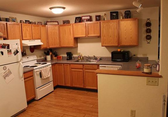 This is a beautiful 2 bedroom, ground level condo that is placed on the south east corner of building #7410. Nice, warm morning sunshine will graze across your face as your sitting on your own private patio sipping on coffee, reading, or just enjoying nature. The interior has been custom painted and also has high-end wood laminate flooring. The garage is a full 2 car garage with storage shelving already in place. Kitchen & laundry appliances are included. The floor plan is a spacious open concept.This is a ground floor condo with some of the best views in the complex of mother nature, and it's close to: biking, walking & hiking trails. Monthly association fees are only $150, included in this payment are: snow removal, lawn care and exterior maintenance, garbage, water & heat.