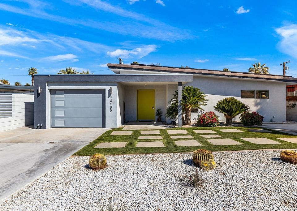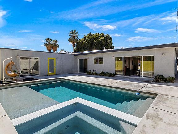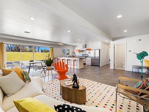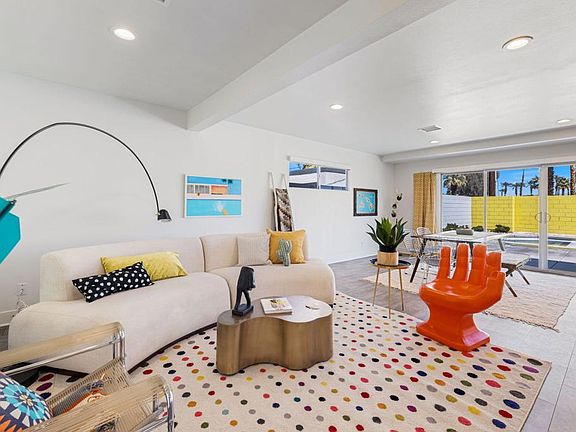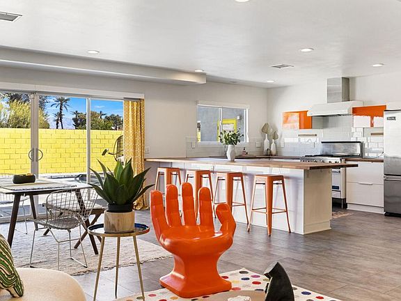 Stunning, near-new Mid-Century Modern home in Palm Desert features 6 bedrooms and 5.5 bathrooms great for groups and families. Master Bedroom is huge and has large walk-in closet. Attached Casita opens out to the pool (as does the Master). Completely renovated in 2018 with brand new stainless steel appliances and brightly colored accent walls. Five minture walk to El Paseo, mutliple bars and restaurants, as well as the local Farmers Market. Reach out today for a showing!