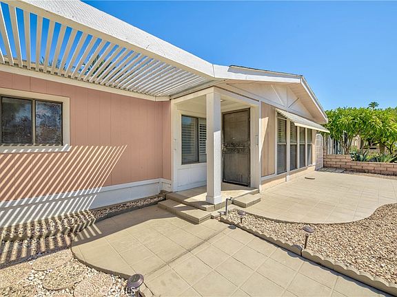 Now is your chance to own a home in the Exclusive 55+ gated community of Portola Country Club. This 3 bedroom 2 bathroom home is situated in a low HOA neighborhood that includes, 18-hole golf course, trash, internet, cable, 3 community pools & spas, dog park, clubhouse, fitness room, tennis court, pickle ball, RV parking & many more. This lovely home features an open floor plan, higher ceilings, dual-pane windows with plantation style shutters. The remodeled kitchen is perfect for entertaining that opens up to the living room, dining room and mini bar. Primary bedroom has a large walk-in closet, beautiful upgraded bathroom with double vanity, soaking tube and walk-in shower. The covered patio is a great way to enjoy your outdoor oasis. Best part of this home, NO LAND LEASE! Perfect location near El Paseo shopping district, McCallum Theatre, variety of restaurants, Palm Desert Park & Aquatic Center. Schedule a tour today to check out your next home!