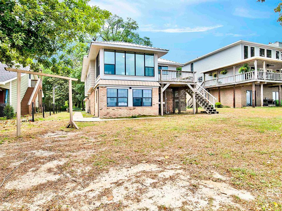 Bayfront opportunity on Mobile Bay! This 5-bedroom, 2.5-bath property offers plenty of space, flexible living arrangements, and stunning waterfront views. While the home will require some TLC, key improvements have already been made, including a new roof in 2020, new septic tank and field lines in 2020, a new bulkhead in 2021, a new deck in 2021, and a sunroom window replacement in 2021.Inside, the home features bright spaces, fresh paint upstairs, and the convenience of a laundry room on each floor. The property also includes RV storage with full utilities and, according to the seller, has never flooded—a rare advantage for bayfront living.Bring your vision to restore and refresh this property into the ultimate waterfront retreat. With major system updates already in place and breathtaking sunsets over the bay, this is a chance to create your own paradise on Mobile Bay.Buyer to verify all information during due diligence. Buyer to verify all information during due diligence.