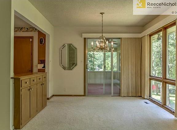 Mid-Century ranch home in Platte Woods with lots of green space. A location at the end of a dead-end street adds for additional privacy along with an available non-building lot across the road for a garden or additional fruit trees. A private lake backs up to the home and allows for a tranquil and scenic view from the screened-in porch.