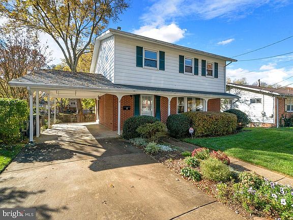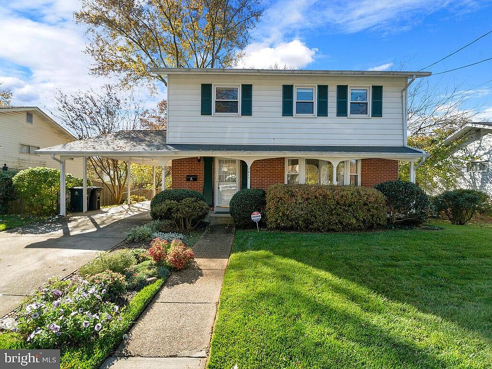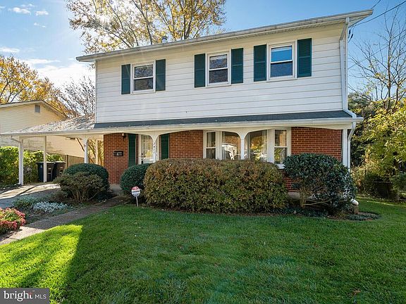Bring your groceries right into the kitchen from your carport or through the front covered porch protected from the elements! Welcome to this stately brick Colonial with a fully fenced and spacious rear yard. The main level features a light filled, L-shaped living room and dining room with hardwood floors, a table space kitchen with exit to carport and door to lower level and powder room off the foyer. The upper level features a primary bedroom with ensuite bath, three additional bedrooms and a hall full bath. The unfinished lower level has loads of possibilities and awaits your creativity as it boasts high ceilings, a walk- up exit and laundry area. There is enough room for a rec room area, a laundry area and even built-in storage could be added. Lovingly cared for over the years by its long time owners, it simply needs a little sprucing. Wall-to-wall carpeting has been removed to display hardwoods on main and upper levels. Quick settlement available. Please note: Flood insurance was not required when the Sellers purchased the house but may be required now (drainage area behind houses for water runoff) . Buyer is advised to speak to their insurance agent as to cost and requirement. Sold strictly AS IS but truly a move-in home.