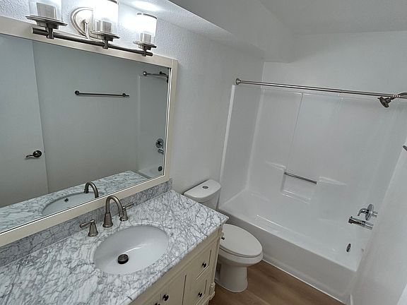This newly upgraded apartment home offers modern living with a fresh white interior color scheme, brand-new hard flooring, ceiling fan light fixtures, and central AC for year-round comfort. The kitchen features shaker-style cabinets and stainless-steel appliances which include a gas stove and dishwasher.