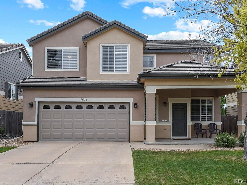 PRICE IMPROVEMENT, $3500 CLOSING CREDIT & A BEAUTIFUL HOME! Vaulted, open floor plan with abundant natural light is move in ready with many updates for you to enjoy! Recently repainted interior, quartz counters in kitchen with tile backsplash, new sliding door to patio, new appliances, new large capacity water heater, new "quiet" garage door opener & door...plus many more. Warm and inviting home has a welcoming entry into the vaulted living room with see through fireplace/tile surround. It opens into the family room and open kitchen layout, newer ceiling fan/kitchen light. Large eat in kitchen, pantry, lots of cabinetry for storage, 42" w/ crown molding. Updated SS appliances stay...great full convection oven! Sliding door to the outside patio for those warm summer nights, convenient ML laundry with cabinets, washer/dryer stay. Large storage closet under the stairs. UL, features 3 nice sized bedrooms, and large loft which could easily be transformed into a 4th bedroom! Master bedroom is spacious, with private bath. 2 additional bedrooms that share the 2nd full bath. Garage is drywalled, nicely lit, new garage door & quiet opener, storage area. Back yard offers nice patio, fenced yard and lovely shade trees. Great covered front porch for additional outdoor enjoyment! NEWER APPLIANCES, NEWER AC, NEWER SLIDING DOOR, NEWER GARAGE DOOR & OPENER, FURNACE JUST CLEANED/SERVICED, PLUS 1 YEAR AMERICAN HOME SHIELD WARRANTY - HOME SHIELD PLUS...PEACE OF MIND FOR YOUR BUYERS! Cherry Creek 5 Schools, GREAT PROXIMITY TO PARKER, TECH CENTER, AURORA, PARKS, TRAVEL & SHOPPING. MOVE IN READY HOME!