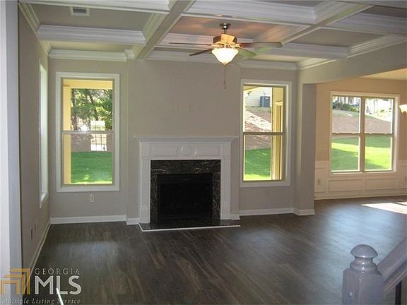 ALL Electric - No High Gas Bills! Upgraded with stylish LVT flooring on entire main level! Island kit with side by side fridge, glass tile back splash & walk-in pantry. Dining rm w/picture box molding views great rm w/coffered ceiling & fireplace. Vaulted covered porch overlooks private, wooded backyard. Dramatic 2-story foyer leads to upstairs featuring large laundry rm. Vaulted master w/tile spa bath - 2" blinds.