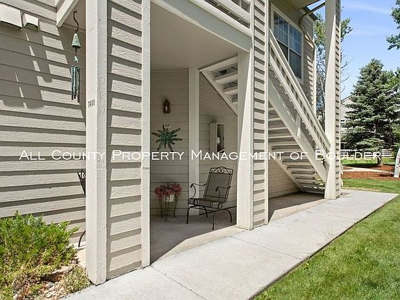 APPLICATIONS PENDING. Gunbarrel ground level condo, AVAILABLE NOW! This two bedroom, two bath unit is move in ready, and features an open concept floor plan. Great kitchen with plenty of storage and built in shelving. Kitchen has access to the attached one car garage. Kitchen opens up to the separate dining room and living room with gas fireplace. Patio faces greenbelt for added privacy and beauty. Master bedroom has cute alcove by the window, walk-in closet, and en suite bath with soaker tub. Home includes second bedroom with walk-in closet, full bathroom, washer/dryer, and central AC. Located in a quiet neighborhood that features an outdoor pool, exercise facility, and clubhouse (some of these amenities may not currently be open). Very close to trails, open space, and greenbelt. Water, sewer and trash are included with rent! One pet is negotiable, but no smokers please. AVAILABLE NOW, and looking for a one year lease. First months rent and security deposit due upon lease signing. To schedule a showing, visit allcountyboulder.com.