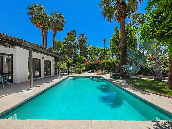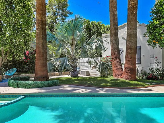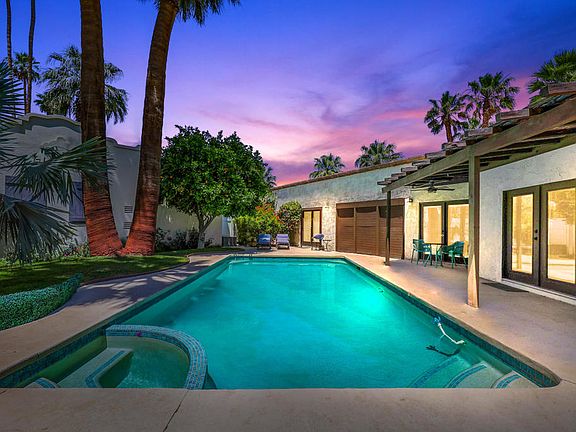 Beautiful, majestic Mission-style estate with a distinctive bell tower on an over 13,000 sq ft lot. The main residence has 3 bedrooms with 3 en suite bathrooms, abundant closets, including a second master suite that has a kitchenette and private entrance. Tucked away in the picturesque backyard, is a detached 1bd/1ba Mission-style casita with a kitchentte and stacked washer/dryer. This charming mini-dwelling boasts 10-foot ceilings and offers total privacy with it's own front and back courtyards. The versatility of this property is attractive for your guests, friends or renting out, if desired. Has a track record as a successful STR. The tranquil park-like backyard boasts a newly renovated pebbletec pool & spa, citrus trees, palm trees, a rose garden and more. Multiple windows and skylights let the sunshine in throughout. This sub-tropical paradise is located around the corner from El Paseo, 'the Rodeo Drive of the Desert' and convenient to everything you need. Call and make your appointment today to tour this exceptional property! Attention investors: This property is in essence a 'triplex' comprising the main house which includes an attached casita plus a detached casita, and is a great candidate for a 1031 Exchange.