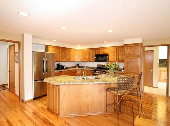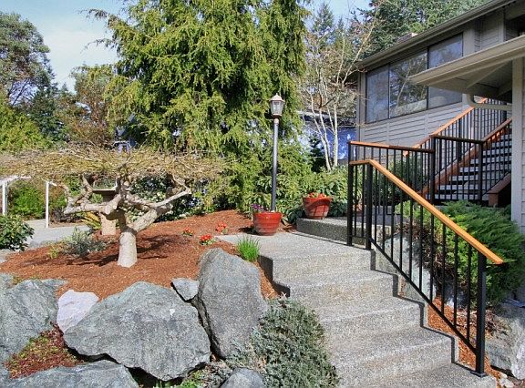 Lovely remodeled home on prominent lot at top of dead-end street offers both privacy & luxury. Private mstr bdrm alone on 2nd level w/balcony & 5-piece bth, jetted tub, walk-in closet. 4th bdrm could be den/office/playrm. New gas range, dshwshr, granite counters in island kitchen & pwdr rm. Big refrig; huge dng, fam & laundry rms; 3 frplcs. Flrs: hrdwd, tile, & new cpt. Lrg storage unit in gar. Sunny Trex deck w/covered, built-in gas BBQ; greenhse; solarium/mud rm; nice, low-maintenance lawn.