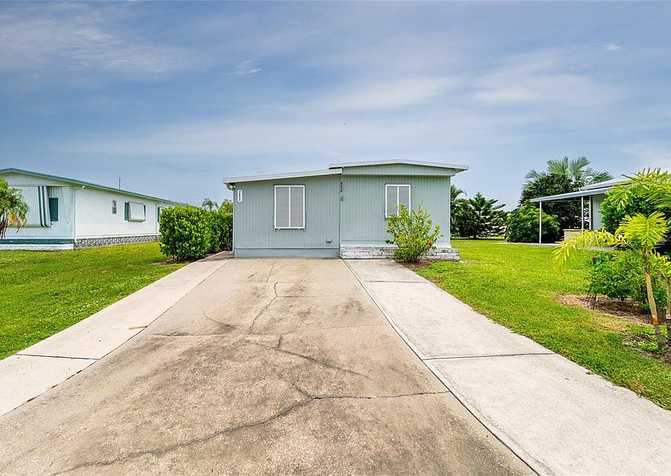 Welcome to the friendly Village of Holiday Lake community. You will love this TURNKEY ready 2-bedroom, 1-bathroom fully furnished home the minute you step inside. This home has been FRESHLY PAINTED INSIDE AND OUT. Enter home into the nice sized eat-in kitchen with cooktop stove and plenty of cabinet/counter space. Kitchen overlooks your living room area with wood laminate flooring. Two nice size bedrooms along with a full bathroom. Large Florida room with Bahama Shutters and storage area. This home has a washer inside, UPDATED AIR CONDITIONER, REFRIGERATOR, BOTTOM CABINETS and DOORS, The Village of Holiday Lake offers 20+ boat slips with access to Charlotte Harbor and the Gulf of Mexico through the lock system. Beautiful pool area boasting 2 pools and BBQ area. There is always something going on for everyone at the large recreation hall with full kitchen, craft room, laundry facility along with areas for woodworking , tennis, shuffleboard and more. Golf Carts welcome. Would make a great rental or your winter get away spot. Low HOA.