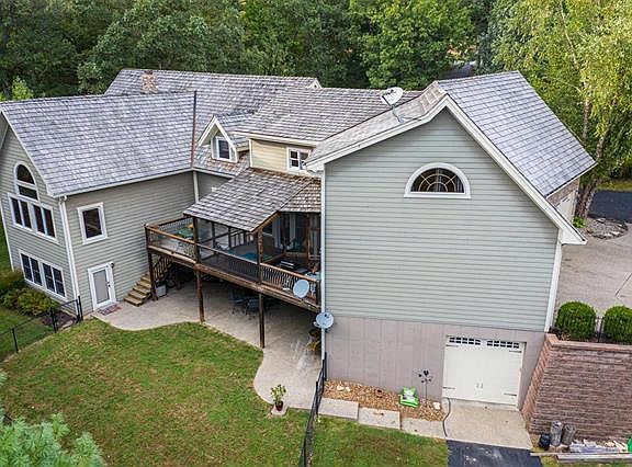 YOU WILL BE WOWED!! Take one look at this AMAZING timber frame home and you will fall in love! The post and beam construction is beautiful! You'll get the feeling of wide open spaces, yet warm. Main floor master bedroom suite has it's own cozy gas fireplace and looks out onto the wooded backdrop with native trees including several dogwoods for a showy display in the spring. 3 more spacious bedrooms up, including one with it's own wet bar!! The great room is amazing with stone fireplace, soaring ceilings and overlooks the lower level with floor to ceiling windows and a massive antler chandelier! The dream kitchen has a gas cooktop and granite tops. In fact, all the countertops are granite! Nothing spared! From the dining area, step out onto the screened deck and watch the wildlife and relax. If you need garage space, you will be happy to see the 3 car oversized garage up and another (at least) 2 car tuck under. Words can only do so much. This dream home has to be seen! Close to town!