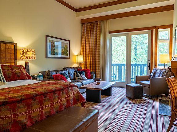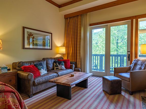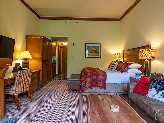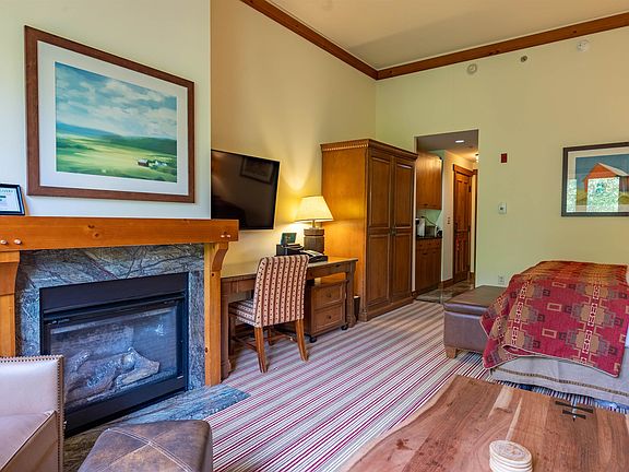 Amazing first floor south wing studio in the Lodge at Spruce Peak! High ceilings and Mansfield view. Cozy, warm and welcoming! Enjoy the luxury bathroom, fireplace and private deck. Roll out of bed for first tracks, steps away from slopes, golf, spa, pool, valet parking and ski valet. Come find your home on the mountain.