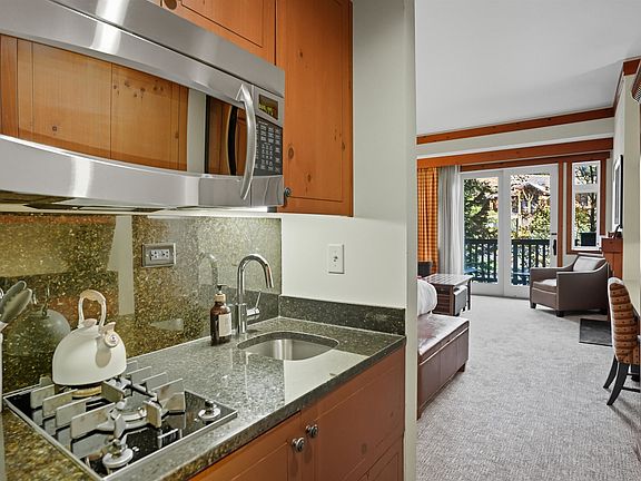 Beautiful well maintained studio facing Spruce Peak Village and golf course. Cozy, warm and welcoming! Fireplace, balcony for two, luxury bathroom with soaker tub and separate shower. Mini kitchen with two burner stove, dishwasher and small fridge. Perfect weekend getaway. Steps away from slopes, Spruce Peak village, spa, gym, pool, golf course and restaurants. Roll out of bed for first tracks. Come find your home on the mountain!!