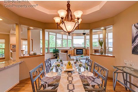 Stunning custom Jay Jensen home featured in the Parade of Homes, located in Poudre River Ranch! This gracious property welcomes you in with vaulted ceilings throughout main level, beautiful hardwood floors, a bright and open great room with unique wrap around windows, custom built-ins and Australian Sandstone ledges. Entertaining is a delight with the elevated dining room w/ tres ceilings and sunny kitchen with slab granite counter-tops, open to the eat-in area overlooking the covered wrap around deck and immaculate 1/3 acre lot. Main floor study boasts a 2 sided fireplace. Exquisite master has private access to deck, 2 sided fireplace, 5 piece bath & generous walk-in closet. Finished garden level basement is perfect for entertaining with a wet bar, rec room, multi-purpose room, 3 bedrooms, 1 full bath and storage! Walking distance to Poudre River Ranch trailhead and only 15 minutes to Centera Shopping.