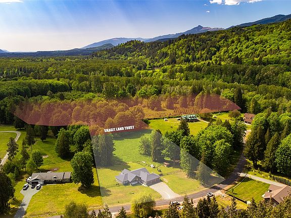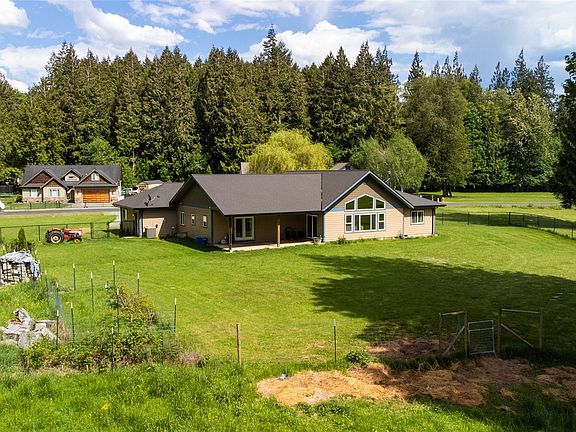 Custom newer built rambler on 3 level acres, first time on market! Located on a cul-de-sac, in a private community, bordered by 40 acres of Skagit Land Trust where the elk & deer roam free. Front door opens to an open concept kitchen, stainless steel appliances, granite countertops, a huge island, vaulted ceilings, wood burning stove & incredible natural lighting. Massive primary bedroom features: a walk-in closet & access to covered porch with stunning views. Primary bathroom features: custom tile work, double sink & granite countertop. Spacious additional bedrooms connect with charming full bath. Utility room with ample storage. Fully fenced, ready for you to bring your pets & animals! 3 car garage is 1,000 sq ft: wired for welder & RV.