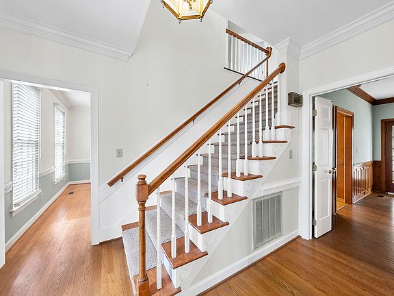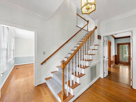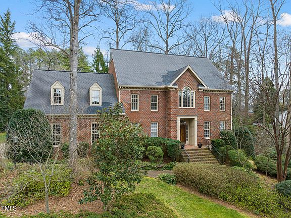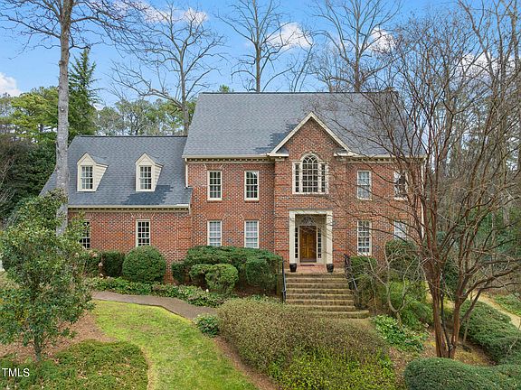 Welcome to the prestigious North Ridge Estates in Raleigh, where this stunning Custom Brick home awaits you. Boasting 4 bedrooms, 2 1/2 bathrooms, and dual staircases, this residence exudes elegance and comfort. This home sits on a Large Corner Lot in an incredible location near the Golf Course. If you are looking to expand there is approx. 882 sf of unfinished Walk Up Attic space waiting for you to make it your own! Upon entering, you'll be greeted by crown molding throughout the first floor, adding a touch of sophistication to the space. The large formal dining room is perfect for hosting gatherings, while the formal living room offers versatility, ideal for an office or a cozy retreat. Hardwood floors flow seamlessly throughout the first floor, enhancing the home's timeless appeal. The spacious Kitchen features ample cabinet storage and abundant natural light, stainless steel appliances & built-ins. It opens up to the large family room, where you'll find exquisite woodwork, built-ins, wainscoting, and a charming brick fireplace. Adjacent to the kitchen, the breakfast area boasts a bank of windows providing a bright and inviting atmosphere. Step into the amazing sunroom, bathed in sunlight from its myriad of windows, offering a serene space for morning coffee or afternoon tea. Upstairs, the large owner's suite includes a separate sitting area and a generous window flooding the room with light. The recently updated owner's bath is a sanctuary, featuring a huge glass walk-in shower and a luxurious soaking tub. A large walk-in closet with a window provides ample storage space. Three additional bedrooms and a full bathroom offer comfort and convenience for family and guests. The expansive bonus room is a versatile space with built-ins, separate stairs leading down to the kitchen, and plenty of natural light. The upstairs laundry room is spacious and well-appointed, with ample cabinet storage. This home has a great side entry 2 car garage. Outside, the expansive deck with a pergola and planter boxes is perfect for outdoor entertaining, while the beautifully landscaped yard boasts mature trees, creating a tranquil retreat. Don't miss the opportunity to call this exquisite North Ridge Estates property home and experience luxury living at its finest.