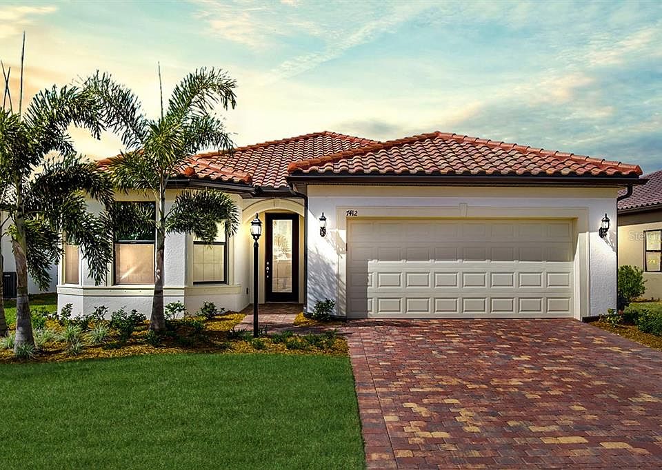 One or more photo(s) has been virtually staged. $5000 CREDIT FOR WINDOW TREATMENTS WITH FULL PRICE ACCEPTED OFFER! New Build-Never Lived In! One of the best lake lots with long sunset view of the lake! Welcome to 7412 Summerland Cove, a stunning and spacious newly built single-family home located in the desirable community of Del Webb. This 3-bedroom, 2-bathroom gem boasts over 2084 square feet of living space. This home was built using the most desirable floor plan called the "Mystique" providing you with the ultimate comfort and luxury. As soon as you step into the home, you will be greeted by a beautiful open-concept living and dining area, perfect for hosting and entertaining guests. The elegant and modern kitchen features stainless steel appliances, granite countertops, and ample cabinetry, making cooking and meal prep a breeze. The kitchen opens up to a cozy family room, complete with a decorative ceiling fan, and large windows that allow for an abundance of natural light to pour in. Escape to the spacious master suite, featuring plush carpet, decorative ceiling fan, a large walk-in closet, a private en suite bathroom with dual vanities, and a custom tile walk-in shower with a bench. The additional two bedrooms are perfect for guests, or a home office with plush carpets, decorative ceiling fans, spacious closets, and ample windows for natural light. In addition to the prime location, this home offers a 2-car garage and a laundry room, providing you with the convenience and practicality you need. Additional flex space can easily be a home office or guest bedroom. Step outside to your own private oasis and take in the breathtaking views of the beautifully landscaped backyard and pond, perfect for outdoor entertaining and relaxation. The backyard also features a large screened patio, with room for outdoor dining, additional space for grilling, and other outdoor activities. 55+ neighborhood close to shopping and restaurants. Don't miss out on the opportunity to own this incredible home in the sought-after Lakewood Ranch community. Schedule a showing today and start living your dream life.