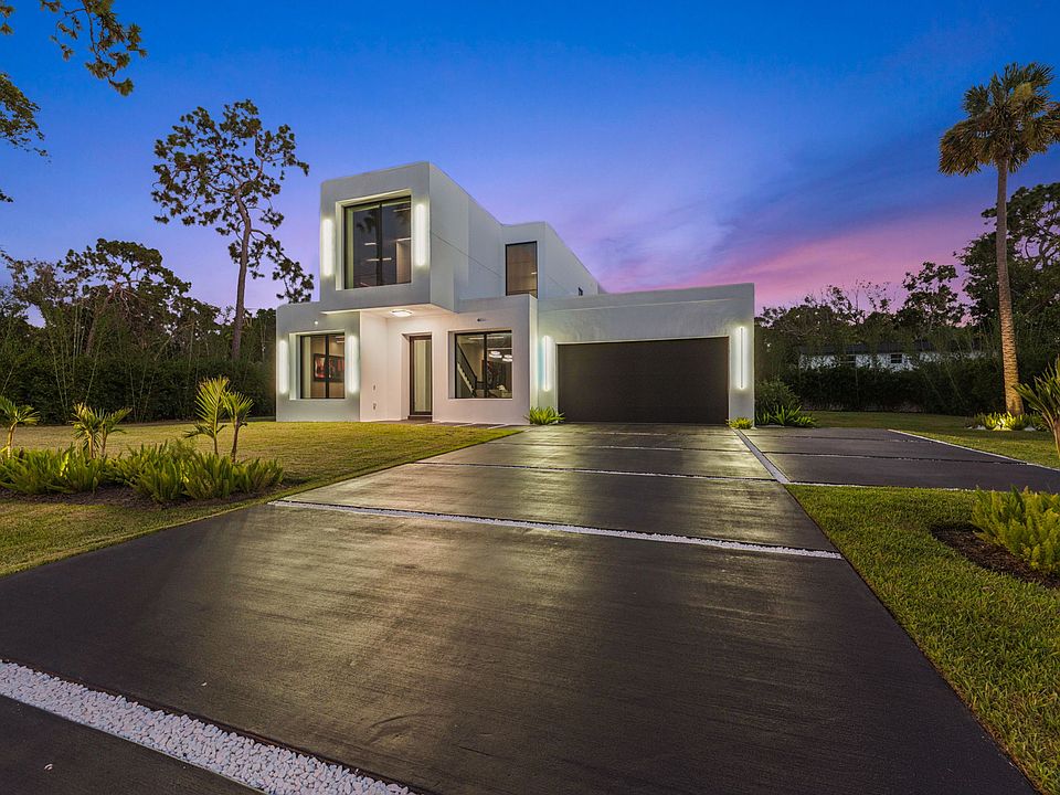 Welcome to your new sleek luxury dream home that meets smart innovation living. This 2,506 sq feet modern 2 bedroom/ 2 bathroom home with den comes fully furnished with no details unnoticed. This home is tucked away on a 1/2 acre lot of 360- privacy located just off the Veteran's Expressway in the heart of Odessa, with easy access to Tampa International Airport, upscale dining, shopping and top-rated schools: Hammond Elementary, Martinez Middle, and Steinbrenner High. This open concept design home offers top-tier Fisher & Paykel kitchen appliances (induction cooktop with a telescopic range hood), and flows effortlessly into the great room enhanced by a SimpliFire electric fireplace, adding warmth and ambiance. This space is anchored by a tranquil water feature and complemented by a convenient downstairs bedroom and full bath. Upstairs you will find your primary suite that is a sanctuary of sophistication to unwind in a cozy sitting area besides a second Simplifire electric fireplace. The Bedroom comes with a custom walk- through closet complete with a LG Thin-Q washer/dryer. The en-suite spa like bathroom showcases dual vanities, a freestanding soaking tub, and an open-concept shower with dual heads. Outside, enjoy the lush green landscaping under the covered lanai that sets the stage for unforgettable gatherings, featuring outdoor seating, and a night projector system to complete your own little paradise. This smart home also features a water softener, security system, three 85' TV's throughout home with one additional in the garage, Sonos surround system throughout home inside and out, a oversized 2 car garage, and remote black out shades throughout home just to name a few! Lawncare and pest control included by owner.