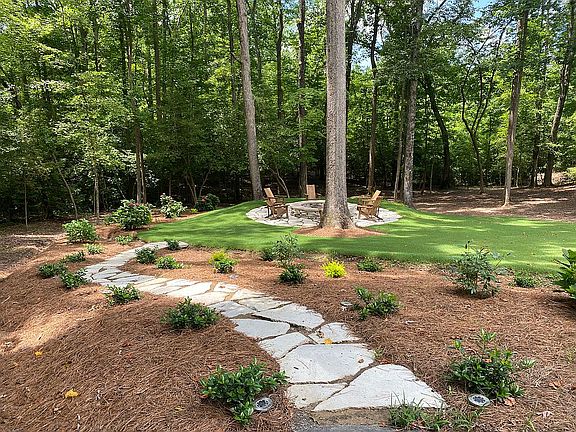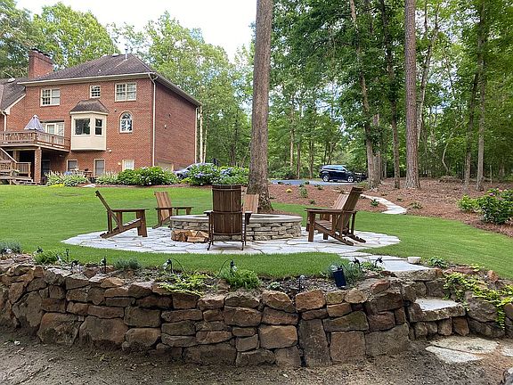 -Custom Brick Home situated on a beautifully landscaped lot in Lake Villanow. Hwd floors throughout main level. Formal DiningRoom. Eat-In Kitchen w floor to ceiling cabinets, stainless steel appliances, & large butlers pantry. Sunlit Living Room w fireplace & custom cabinetry. Main level master features its own fireplace w enough room for cozy sitting area which opens up to a serene screened porch. Addtl bdrms up with 2 full bathrooms and a Large Laundry room. An additional 1200 sq ft of unfinished basement and an unfinished walk up attic for plenty of storage needs, future game room, or man cave. The large outdoor fire pit is spectacular it is surrounded by mature hydrangeas. The fire pit overlooks a small creek the runs at the back of the property.