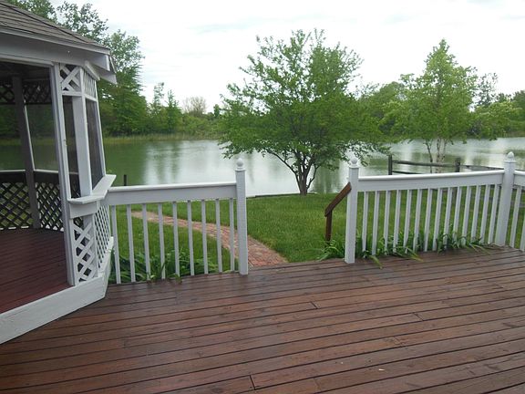 1700 plus square feet. 3 Good sized bedrooms 1.5 bath. Master has walk in closet with an additional sink and counterspace. HUGE kitchen with lots of counterspace. Vaulted ceilings and cozy wood burning fireplace in living room. Wonderful views of the lake. Gazebo and deck to enjoy. Fenced in yard make it great for pets and kids.