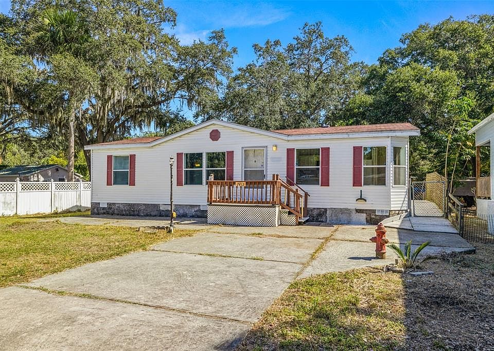 NEW ROOF included in price! Have you been waiting for a home like this to hit the market?? Great 3BR/2BA double wide mobile home within a mile of downtown New Port Richey -- clean and ready for you! Set back from the road, the long driveway leads to a large concrete patio area and front porch deck and features a handicap access ramp on the side. Close to the Pithlachascotee "Cotee" River, all the fun activities in downtown New Port Richey, Sims Park and the Gulf Coast. This town allows golf carts in designated areas within city limits (please check with the City of New Port Richey for rules/regs/permit/application info). There is no HOA, so park your boat, your RV or even build a garage to house your toys....there are a LOT of options to enhance this property. The white kitchen is roomy with a center island that has space for 2 or 3 bar stools, as well as a dinette area with a bay of windows for nice natural light. The refrigerator is new and washer & dryer is included. Roomy closets and a master bath with soaking tub and separate shower. Hall bath has a tub/shower combo. The fully electrified workshop out back features a loft for storage and is ideal to store gardening tools, set up a woodworking shop, use as an art studio or maybe customize it for that special Man Cave or She Shed! The chain link fence surrounds the back yard and has double gate on the north side -- this feature is terrific for parking your boat/camper/golf cart in a secure location. Come enjoy small town living in New Port Richey! A gem on the Gulf Coast of Florida!
