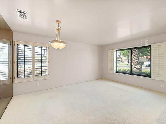 Price Reduced from $430,000 3BR, 2BA condo 1,547 Sq. Ft. with vaulted ceilings, window shutters, ceiling fans, skylights, dual pane windows and mountain views. The kitchen has sleek modern cabinetry, quartz countertop and breakfast bar. The primary bedroom features a walk-in closet, en suite with dual vanities, tiled shower, bathtub and a sliding glass patio door. The guest bedroom has mirrored closet doors and patio access. The 3rd bedroom can be utilized as a Den/Office. Outdoor living spaces feature colorful wall tile, a covered patio and views to the mountains. The 2 car garage has storage cabinets and work bench. Portola Village is a gated, low density community with pool, spa, tennis + pickleball. Fabulous location close to shopping, restaurants, theaters, College of the Desert and Palm Desert Civic Park. Estate Sale, Sold in 'AS IS' condition.