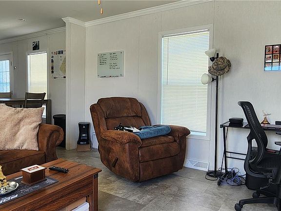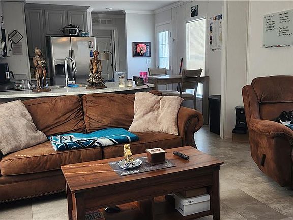 Welcome to this charming 4-year-old manufactured home nestled within a serene and inviting community, offering tranquility and convenience. Situated in a quiet neighborhood, this delightful residence boasts a spacious fenced yard, providing privacy and security for residents to enjoy outdoor activities and relaxation. As you step into this cozy abode, you'll be greeted by a warm and inviting atmosphere, with ample natural light streaming through the windows. The open-concept layout seamlessly connects the living, dining, and kitchen areas, making it ideal for comfortable living and entertaining guests. The well-appointed kitchen features modern appliances, ample cabinet space, and an eat-in kitchen. Perfect for preparing delicious meals and gathering with loved ones. The master suite provides a peaceful retreat, complete with a generous closet and an ensuite bathroom for added comfort & convenience. Two additional bedrooms offer versatility for family, guests, home office space, or hobbies. The expansive fenced yard provides a private oasis for outdoor enjoyment, whether it's hosting barbecues, gardening, or simply unwinding under the open sky. The tranquil surroundings offer a serene backdrop for relaxation, while still being conveniently located near shopping centers, restaurants, and other amenities for added convenience.