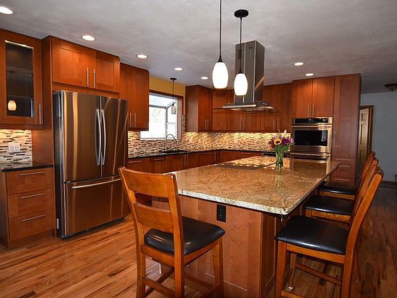 You must see the spectacular custom kitchen remodel in this home! The owners were thoughtful with the impeccable design - top notch GE Monogram induction cooktop, double oven & drawer microwave, Samsung French door stainless fridge, whisper quiet Bosch dishwasher plus unparalleled storage, large granite island, quartz counters & beautiful under-mount lighting showcases the space. Recently refinished hardwood floors on the main level and moss rock wood burning fireplace add to the cozy ambiance. Floor to ceiling south facing windows in the great room provide passive solar heat and keep energy bills low. Don't miss the large unfinished basement for more storage or refinish with your personal touch. Spacious barn and onsite RV parking is perfect for all your toys! The exterior is rock solid with new Hardie Plank siding and a new roof to be installed on the home and barn. Access to top rated schools, a quick 30 min commute home to your mountain oasis and minutes from endless hiking trails!