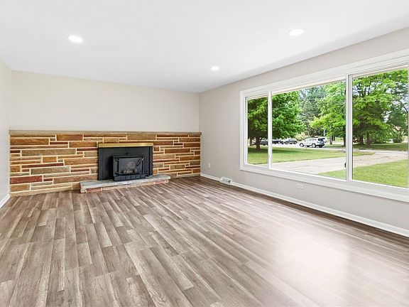 Stunning 3-bedroom 1.5 bath ranch now available! Beautiful open layout with lots of windows creating an open and airy feeling. Tastefully remodeled from top to bottom. This home feels like new construction. Totally remodeled kitchen with gorgeous granite counters with extended overhang ideal for bar stool, tile backsplash, new cabinets, new dishwasher and microwave 2023. Plenty of extra room in the kitchen for a table or extra storage. Half bath off kitchen plus spacious main bath tastefully remodeled in 2023. This home has plenty of extra closets and storage space as well with 3 large hall closets. Generous bedroom sizes as well. Full basement with finished room ideal for home office or hobbies. So many updates in 2023 include: windows, quality laminate flooring, carpet, lighting, doors, electrical and more. Sliding door off dining room leads to 2 patios. Schedule your private tour today.