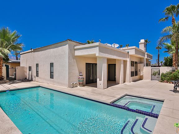 Motivated Sellers! Contemporary family home in much desired South Palm Desert. This home is well maintained and move-in ready, priced to sell! As you enter you will immediately feel the warmth and privacy of this completely walled-in property. The private courtyard is spacious and has great natural light that shines onto the garden. As you step through the front door a generous sized living room and dining room await. The large eat-in kitchen has tons of cabinets and also features a breakfast bar area surrounded by windows to the garden. The spacious master bedroom has its own access to the pool and boasts a large master bath featuring a jet-tub. The house is primarily tile throughout, with the bedrooms being carpeted. Another unique feature is the air conditioned 2-car garage, on a separate electric meter. The backyard is totally private and picturesque, and has great mountain views. This home is conveniently located near Washington Charter Elementary and El Paseo shopping.