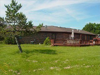 Brick ranch, 2x6 construction & R13-15 insulation, 4-foot crawl. Horseshoe driveway to outbuildings (23x16, 45x36, 80x60 pole barn with 5 doors, cement floor, & private office). 38-acre property is bordered by trees; great place for hunting deer and turkey. Water supplied by pond to cistern holding tank then filtered, cost $28,000. City water available at road; not run to house. Privately owned; not a short sale or foreclosure. Please enter prop