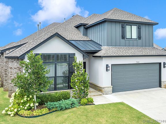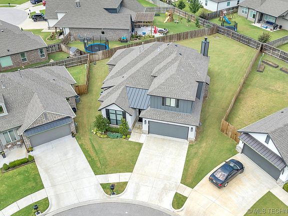 Better than new in Bixby schools, Full brick and stone exterior, Huge island kitchen open to dining and living, Living has beautiful fireplace, Large windows for extra lighting, Huge covered patio with second fireplace, Home features 3 oversized bedrooms, 3 full baths, Master downstairs Secondary bedrooms are upstairs, Office or fourth bedroom off entry. Downstairs flooring wood look tile, Quartz on center island, Granite in baths, Huge walk in pantry, Large inside utility, Upgraded lighting and hardware, Built-ins in hallway, Huge culdesac lot, house sits across from neighborhood pool. This home is truly move in ready.
