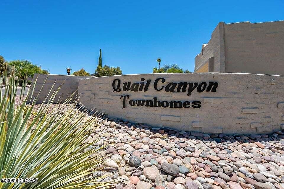 Welcome to your dream oasis nestled in the serene community of Quail Canyon. This home is a true gem which has been beautifully and classically redesigned with timeless features and attention to detail. A front private courtyard with majestic mountain views invites you into the warmth of the living area with custom upgraded features such as rounded corners, arches and solid wood decorative display shelving. Just off the living room French doors flow into a den which could serve as an office or third bedroom. The gorgeous kitchen is designed for entertaining with functionality featuring granite slab counters, warm, quality cabinetry, stainless steel appliances, counter height bar, dining area, custom beverage center, tasteful lighting and fixtures. French doors invite you from the kitchen to the outdoors and onto the comfortable, private back patio and courtyard designed with pavers and landscaped with low water desert plantings. A beautiful Pastiche tree and grapefruit tree add color and shade as a calm sense of privacy envelops you on the patio while you relax with coffee or wine in awe of the Sonoran Desert common area just beyond. The spacious, relaxing primary suite also has a door to the patio plus a surprise bonus room attached which serves as an office, craft room or "anything you want to make it" room. The primary bathroom has been tastefully updated with beautiful tile, dual sinks and tiled walk-in shower. The hall, guest bath is well appointed and beautifully updated as well. Solar tubes make the home light, bright and comfortable. The home is easy to maintain inside and out and clearly has been adored and well maintained with pride of ownership. Another quality feature is the "age-in-place" nature of the home which was thoughtfully included during the remodel. The abundance of storage throughout the home is yet another feature to value. This is an incredibly rare "Turn-Key" opportunity. Please inquire about the furnishings. Also please see the "Highlights and Features" page and "What I Love About This Home" listed under Documents in MLS. Last but not least, you will find the walkability and friendly nature of the community quite special with common area paths that are pleasant for strolling with friends, loved ones and your pups. The refreshing, sparkling community pool is heated and welcoming during the winter months. This highly sought after community is tucked away near spectacular Ventana and Sabino Canyons, world class shopping, dining, hiking, and golf. Prepare to fall head over heels in love!