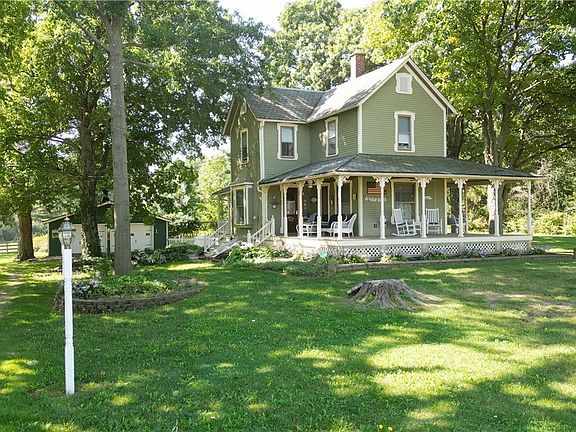Known as the Easton Farm, this charming 1888 Victorian home may be one of the oldest farmhouses in Westfield Township. It's situated on 4 acres and has many great features. The home and horse property has been lovingly maintained by the same family for the past 40 years. You'll immediately notice the huge, welcoming wrap-around porch and enormous (40x70) bank barn. The upper section of the barn is perfect for hosting parties or storing vehicles…the options are endless. The lower section has several sections/work areas. The whole barn has electricity, and lower section has heat. There’s also a horse barn (26x40) with electric, water, and sump pump that leads out to a fenced-in pasture. The home features hardwood floors in most rooms. The 1st floor has plenty of space for entertaining with family, living, and dining rooms. Plus, an eat-in kitchen with gorgeous hand-made oak cabinets and a wood ceiling. There’s a bonus room on the first floor that can be used as a study/office or extra be