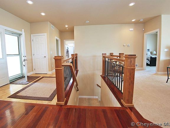 This home features over 3300 square feet with 3 bedrooms, an office, a sun room, three living rooms, 3 bathrooms and 2 gas fireplaces. Upper deck has open views: backs up to subdivision green space and walking trails. Granite countertops, tile floors, hardwood floors, walk-out basement includes 2nd master suite. Xeriscaped backyard including putting green! FORE!