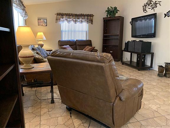 Super clean and surprisingly roomy 2-bed/2-bath home in Embassy Hills. This split floor plan home features vaulted ceilings and new tile flooring in the main living area. Large living room and dining area with room for table that seats 6. Very big master bedroom with plush carpet, ceiling fan and walk-in closet with en-suite bath w/walk-in shower. Giant kitchen with eat-in seating area and 18" tile and all appliances included. Generously sized Bed-2 with plush carpet and ceiling fan and bath-2 with custom tile and shower/tub combo. Relax on the private screened rear porch with tile floors, stone patio and fenced backyard. Oversized 1-car garage includes newer washer/dryer. Driveway w/parking pad for extra parking. New Roof in 2018 and water heater in 2012. Garage and exterior doors have been replaced and electric panel has also been updated. Embassy Hills has no HOA and is a great location near shopping, schools and public transportation.