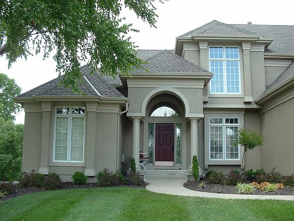 Feels like Brand New at a Resale Price! Could not recreate this home for under $500,000 plus the gorgeous landscaping, window treatments, and the awesome finished basement are already done for you! And it just got better with a brand new roof! Main level master suite. Open, contemporary floor plan with soaring ceilings and magnificent views from gorgeous windows and transoms. Two main floor living areas, both designed to showcase those views! Fantastic kitchen with tons of custom cabinets, solid surface cabinets, and barely used stainless appliances. Roomy bedrooms that all include direct bath access and big walk-in closets. Permanent and spacious greenspace with established trees sits directly behind your backyard. Family time and relaxation are easy in all three of your outdoor escapes - one patio gracefully placed just outside the finished walkout basement; one covered deck off the kitchen, perfect for entertaining; and one peaceful porch-swing tucked under the deck in a beautifully landscaped getaway. This home has been impeccably maintained by its one and only owner, and recent updates included: new paint on all walls AND all trim, new hardware, new carpet, stainless steel appliances, new fixtures, and more. One of the area's premier builders created this home. Don Julian's renowned style for soaring ceilings, moldings and trim, and flowing floor plans is prominently evident here. The walkout basement, with 9' foundation walls, was finished in 2003 and designed to beautifully match the home's main levels. Every space in the basement was thoughtfully planned to provide fun, entertaining, comfortable space for family and friends. The layout includes recreation area, media area, office, kitchen, full bath, game closet, under-stair finish for a kid's awesome play space, and much more, including great storage space. This lower-level could serve as mother-in-law-type quarters if the private office is used as a non-conforming bedroom. There is direct connection to the full bath and the bedroom/office is just steps away from the well-equipped second kitchen. The home is surrounded by lovely landscaping including your very own herb garden and many flowering perennials, making care of the outdoors easier. The entire yard is served by an in-ground sprinkler system too. Did we mention the great location of this home? Easy access to both I-435 and I-35; just one block from the neighborhood swimming pool and playground; just across the street from the County's renowned walking/bike trail system; close proximity to public and private schools (some in walking distance) and to retail, dining and services. Pack your bags and boxes, and be welcomed home!
