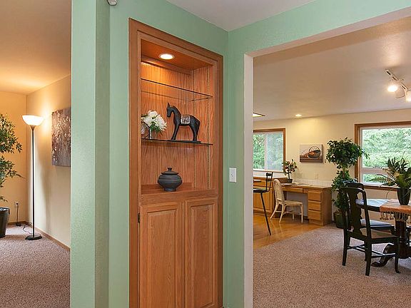 Perfectly perched and tucked away in a private setting! This mint condition home has new carpet and paint and is move-in ready. Located just minutes to schools shopping restaurants and more. Enjoy the garden space, fruit trees and soak in the hot tub. The main living area has over sized windows that allows the natural beauty to fill the home. The kitchen has ample cabinet and counter space. In addition to the 3 beds there’s a bonus room and large laundry room. Tucked away for privacy yet conveniently located. This house is a winner! One year American Home Shield Warranty included in sale.