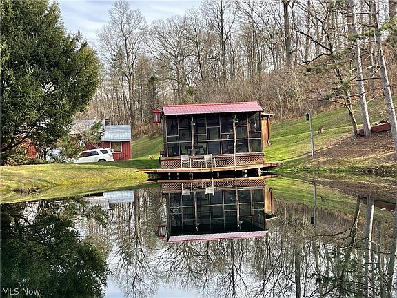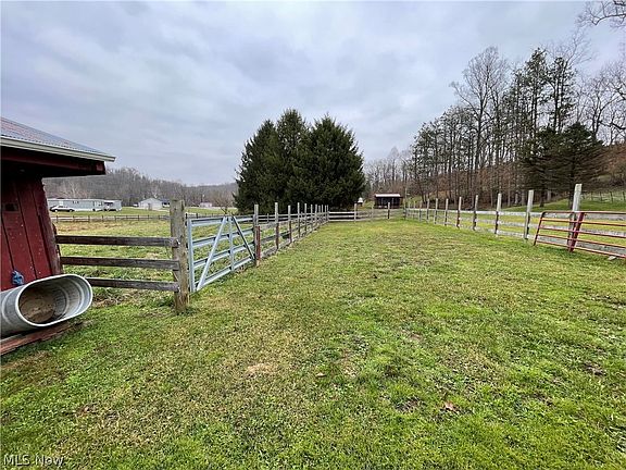Unique recreational property! 13.05 acres with cabin! Mineral rights included. City water, septic/aerator, natural gas heat, cable, generator. All fenced, 7 gates, large fully stocked pond (Bass, Catfish, Blue Gill). 3 barns, water to horse stall barn, surveyed, but not timbered per seller. Shed, screened picnic/pavilion area. Attached garage with workshop approximately 888 square feet. Barn #1 approx 12 x 20, #2 12 x 10, #3 20 x 20. Warren Schools. Property is sold as is.