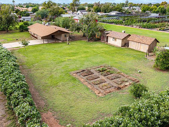 Here is a RARE opportunity for an irrigated property close to P83. This home is functional but will need the buyer's finishing touches to make it a home. Tons of storage here: Two attached storage rooms with power, one large detached, insulated, workshop with power, and two additional detached storage sheds. You will find a large air conditioned addition with a gas fireplace. The Arizona room is perfect for those beautiful Arizona days.